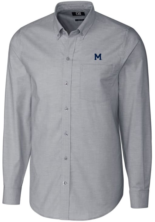 Show your Wolverines spirit show in the office with this Michigan Wolverines Dress Shirt! Embrace your team spirit and showcase it proudly in this Mens Charcoal Vault Stretch Oxford Long Sleeve Long Sleeve Button Down Shirt. This Long Sleeve Dress Shirt features a vault team logo.