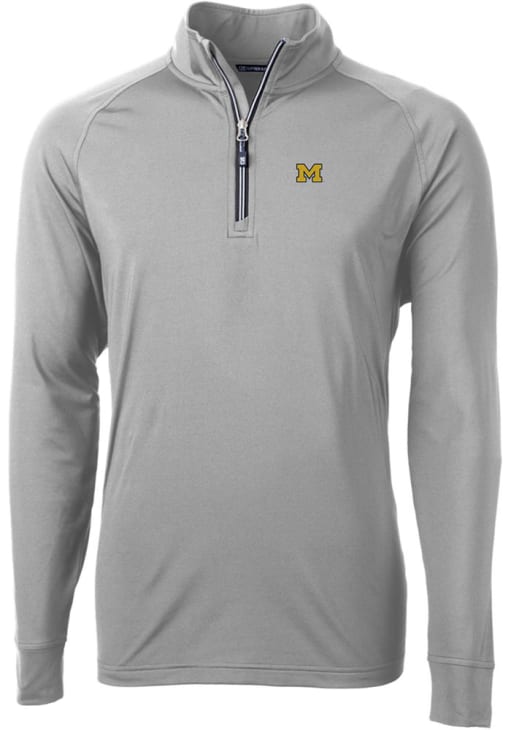 Mens Michigan Wolverines Grey Cutter and Buck Adapt Eco Knit Stretch Qtr Zip Pullover