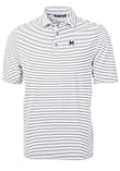 Mens Michigan Wolverines Grey Cutter and Buck Vault Virtue Eco Pique Stripe Short Sleeve Polo Shir..