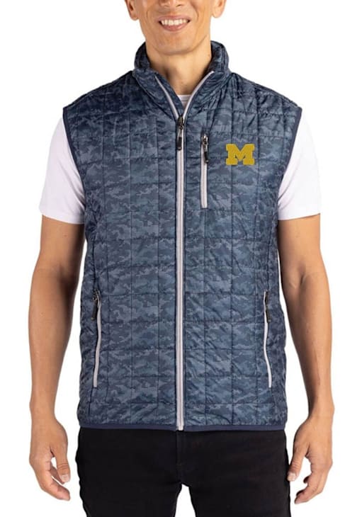 Size Chart for Mens Michigan Wolverines Navy Blue Cutter and Buck Rainier PrimaLoft Printed Vest