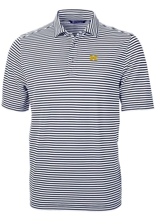 Mens Michigan Wolverines Blue Cutter and Buck Virtue Eco Pique Stripe Short Sleeve Polo Shirt