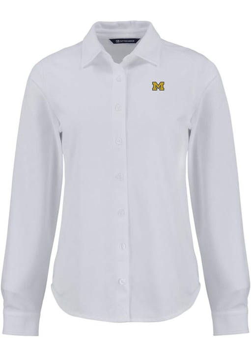 Show your Wolverines spirit show in the office with this Michigan Wolverines Dress Shirt! Embrace your team spirit and showcase it proudly in this Womens White Advantage Soft Pique Long Sleeve Long Sleeve Button Down Shirt. This Long Sleeve Dress Shirt features a team logo on chest.