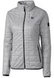 Stay cozy in this Michigan Wolverines Womens Grey Vault Rainier PrimaLoft Puffer Filled Jacket. This Wolverines Filled Coat is a great way to stay warm and show your Michigan spirit in even the coldest weather. Don't leave home without this Michigan Wolverines Filled Jacket, which features a college vault logo.