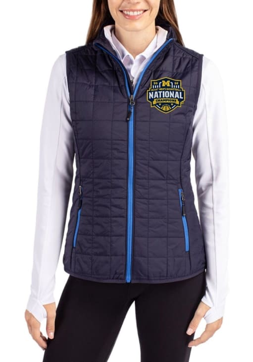 Gear up for the upcoming tailgate with the ultimate Michigan Wolverines Womens Navy Blue Vest. Stay warm in this Michigan 2026 MBB Champions Rainier PrimaLoft Sleeveless Jacket, which features a recycled polyester insulation.