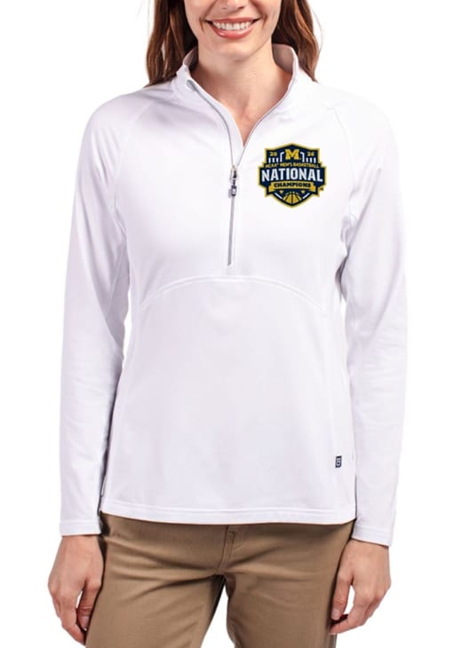 Embrace your Wolverines spirit with pride in this Michigan Wolverines Long Sleeve Qtr Zip. This Womens White 2026 MBB Champions Adapt Eco Long Sleeve Pullover showcases a embroidered team logo at left chest. You'll want to wear this Michigan Wolverines Long Sleeve Qtr Zip every day.