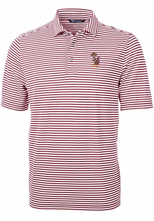 Mens Minnesota Golden Gophers Red Cutter and Buck Vault Virtue Eco Pique Stripe Short Sleeve Polo..