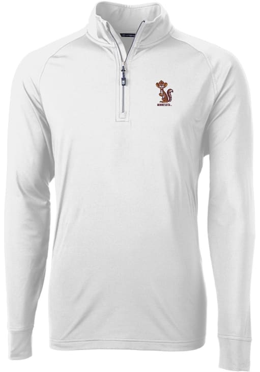 Mens Minnesota Golden Gophers White Cutter and Buck Adapt Eco Vault Qtr Zip Pullover