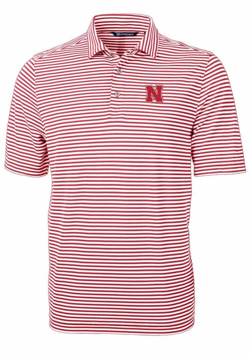 Mens Nebraska Cornhuskers Cardinal Cutter and Buck Virtue Eco Pique Stripe Short Sleeve Polo Shirt
