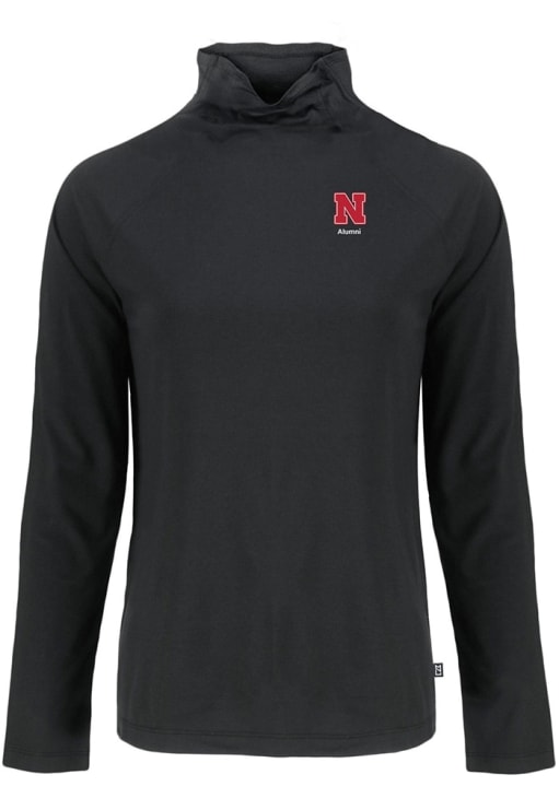 Womens Nebraska Cornhuskers Black Cutter and Buck Alumni Coastline Eco Funnel Neck Crew Sweatshirt