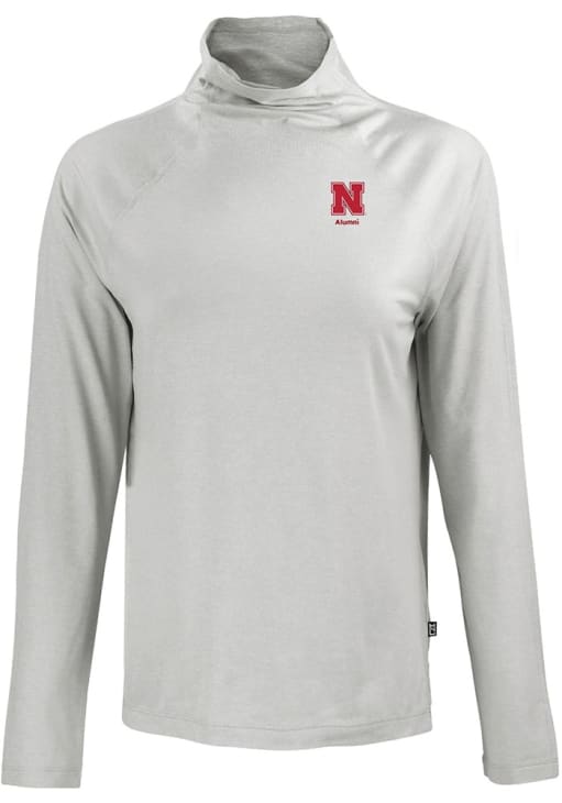 Womens Nebraska Cornhuskers Grey Cutter and Buck Alumni Coastline Eco Funnel Neck Crew Sweatshirt
