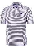 Mens Northwestern Wildcats Purple Cutter and Buck Vault Virtue Eco Pique Stripe Short Sleeve Polo..