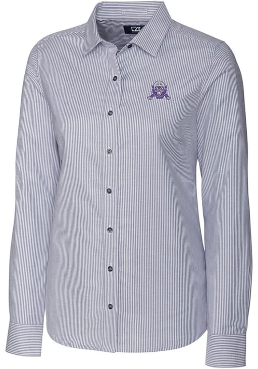 Show your Wildcats spirit show in the office with this Northwestern Wildcats Dress Shirt! Embrace your team spirit and showcase it proudly in this Womens Grey Stretch Oxford Stripe Long Sleeve Long Sleeve Button Down Shirt. This Long Sleeve Dress Shirt features a college vault logo.