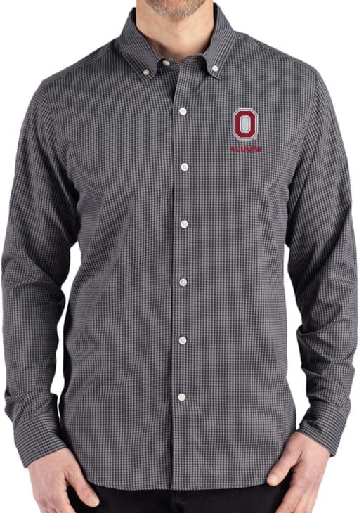 Mens Ohio State Buckeyes Black Cutter and Buck Alumni Gingham LS Woven Long Sleeve Dress Shirt