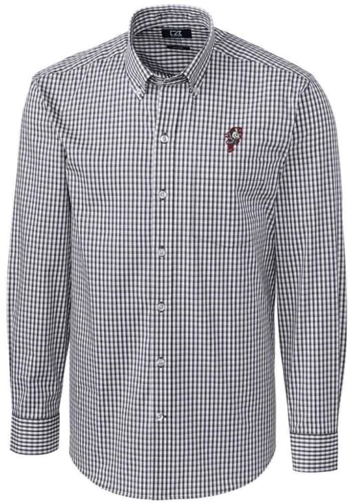 Show your Buckeyes spirit show in the office with this Ohio State Buckeyes Dress Shirt! Embrace your team spirit and showcase it proudly in this Mens Charcoal Easy Care Gingham Long Sleeve Long Sleeve Button Down Shirt. This Long Sleeve Dress Shirt features a vault team logo.