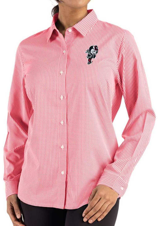 Show your Buckeyes spirit show in the office with this Ohio State Buckeyes Dress Shirt! Embrace your team spirit and showcase it proudly in this Womens Red Epic Confidence Gingham Long Sleeve Long Sleeve Button Down Shirt. This Long Sleeve Dress Shirt features a team logo.