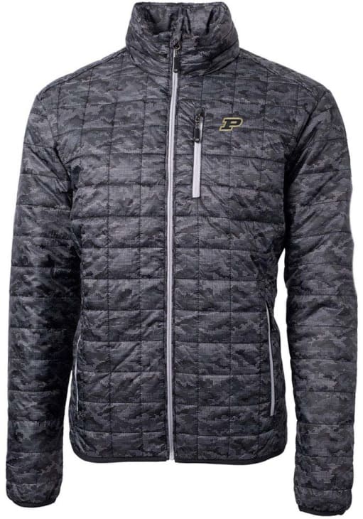 Mens Purdue Boilermakers Black Cutter and Buck Rainier PrimaLoft Printed Puffer Filled Jacket
