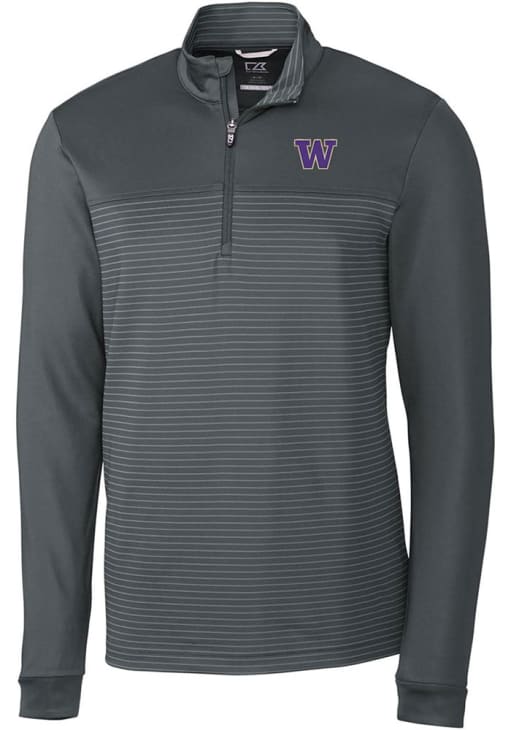 Embrace the warmth and showcase your Huskies pride with our Washington Huskies Long Sleeve Qtr Zip Pullover. This Mens Grey Traverse Stripe Stretch Long Sleeve Pullover offers a high quality 2-ply DryTec matte finish polyester for the perfect combination of comfort and style. Elevate your everyday look with this must-have Washington Huskies Long Sleeve Qtr Zip Pullover.