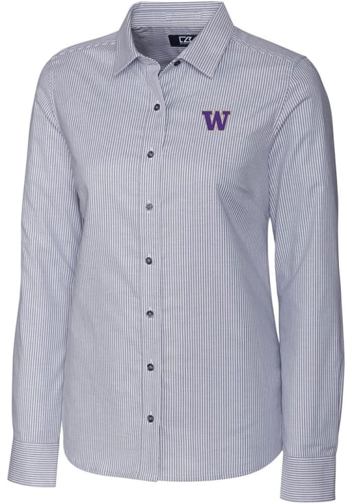 Show your Huskies spirit show in the office with this Washington Huskies Dress Shirt! Embrace your team spirit and showcase it proudly in this Womens Charcoal Stretch Oxford Stripe Long Sleeve Long Sleeve Button Down Shirt. This Long Sleeve Dress Shirt features a high quality Easy Care Stretch fabric.