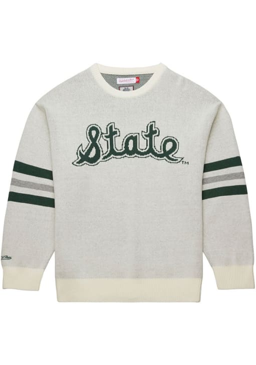 Prepare for an unforgettable game day experience with the Michigan State SpartansMens White Retro Helmet Vintage Logo Sweater. This Spartans Long Sleeve Dress Shirt features a intarsia knit team logo at center chest. Stay warm and comfortable throughout the event with this Mens MSU Spartans Sweater.