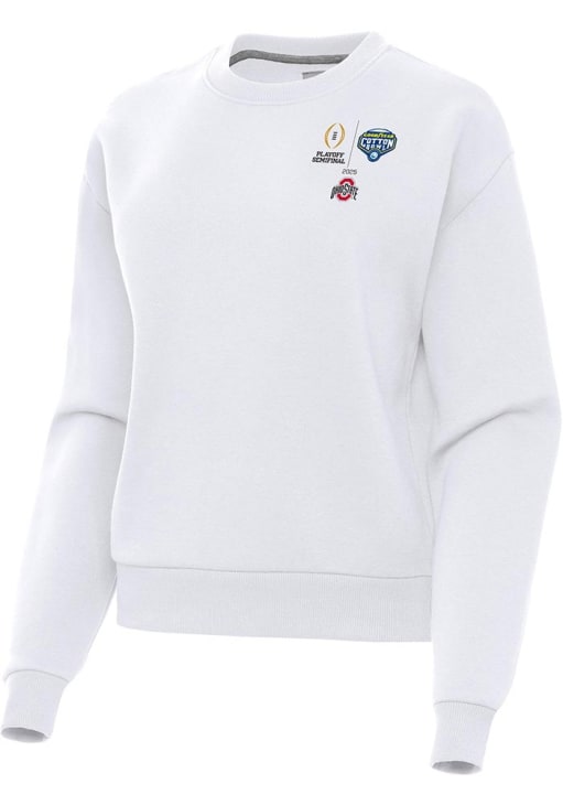 Womens Ohio State Buckeyes White Antigua 2025 Cotton Bowl Bound Victory Crew Sweatshirt