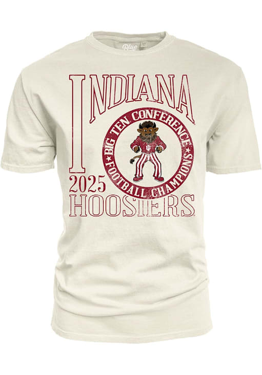 Display your team spirit with this remarkable Indiana Hoosiers Blue 84 White 2025 Big Ten Football Champions Mascot Short Sleeve T Shirt! The Indiana Short Sleeve Tee showcases a screen print team graphic on front chest that truly sets it apart. Stand out from the crowd and proudly declare your allegiance to the Hoosiers with this exceptional White Indiana T Shirt. Indiana, Our Indiana!
