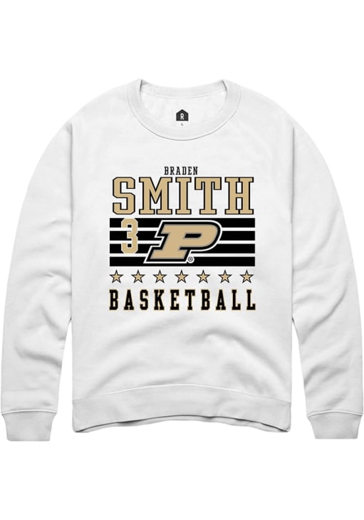 Braden Smith Rally Mens White Purdue Boilermakers NIL Striped Crew Sweatshirt