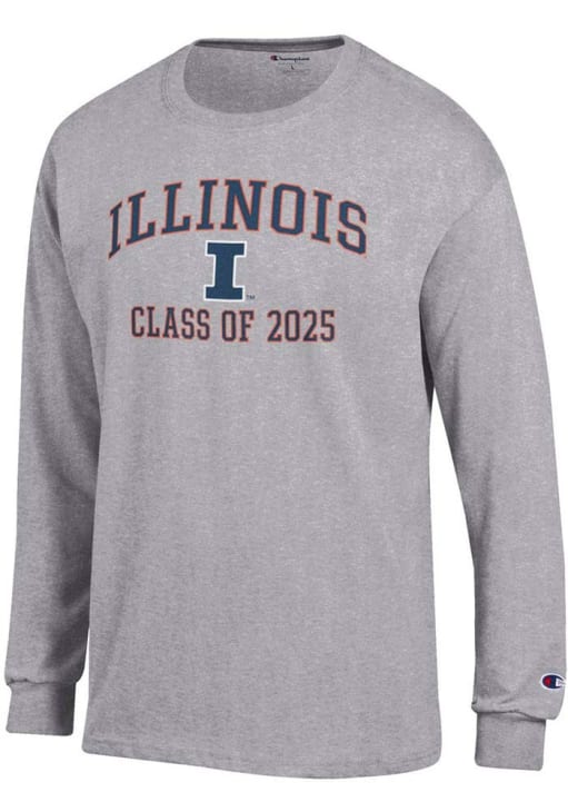 Show your Illinois Fighting Illini spirit in this Illinois Grey T Shirt! This Illinois Class of 2025 Text Jersey Long Sleeve T Shirt makes a great layer for cooler nights cheering on the Fighting Illini. Featuring a printed team graphic on front chest, this Illinois Fighting Illini Long Sleeve Tee is an essential addition for every fan. Go, Illini, Go!