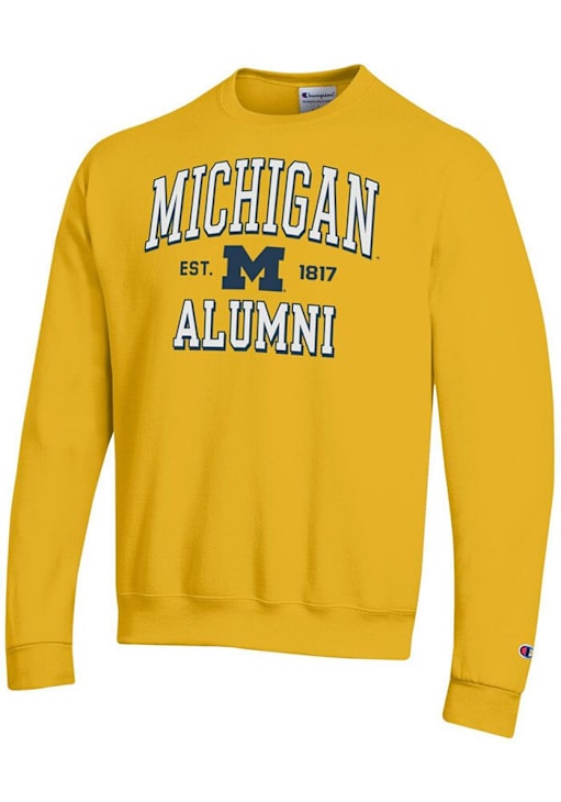 Gear up for the ultimate game day experience with this remarkable Michigan WolverinesMens Yellow Est Alumni Powerblend Crew Sweatshirt! Designed with the true fan in mind, this Wolverines Long Sleeve Crew Sweatshirt features a screen print team graphic. Stay warm and comfortable with this Mens Michigan Wolverines Crew Sweatshirt.