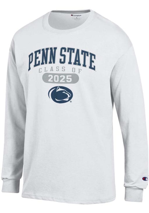 Show your Penn State Nittany Lions spirit in this Penn State White T Shirt! This Penn State Class of 2025 Pill Jersey Long Sleeve T Shirt makes a great layer for cooler nights cheering on the Nittany Lions. Featuring a printed team graphic on front chest, this Penn State Nittany Lions Long Sleeve Tee is an essential addition for every fan. Go Lions!