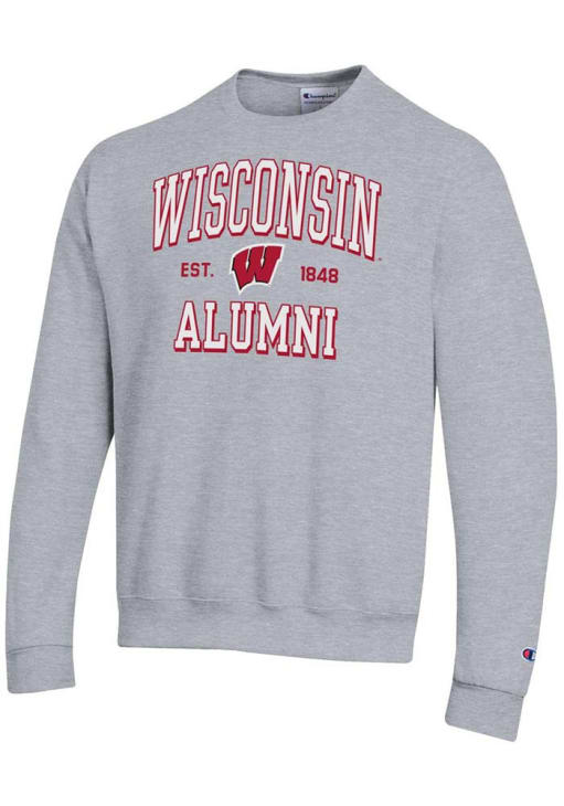 Mens Wisconsin Badgers Grey Champion Est Alumni Powerblend Crew Sweatshirt