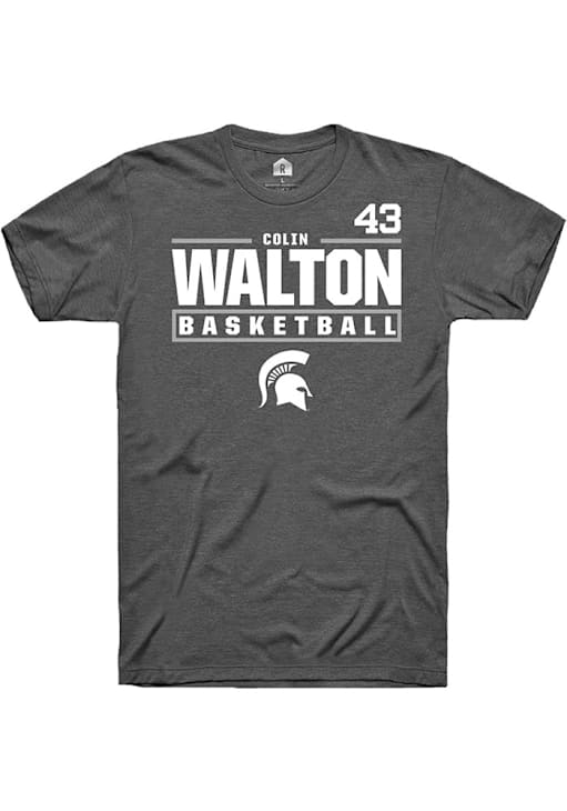 Colin Walton Grey Michigan State Spartans NIL Stacked Box Short Sleeve T Shirt