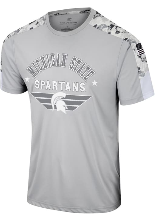 Stay cool and display your Michigan State Spartans spirit in this Grey OHT Hatch T Shirt. This Short Sleeve is the perfect Tee for working out, heading to class, or cheering on the Spartans. Showcasing a screenprint of team name and logo across chest, there's no mistaking your Michigan State Spartans pride in this Spartans OHT Hatch T Shirt!