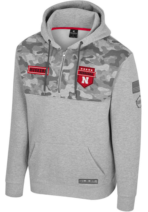 Embrace your Cornhuskers pride and showcase your team spirit with confidence in this Nebraska Cornhuskers Long Sleeve Hoodie! Stay warm and stylish with the Nebraska Mens Grey OHT Platoon Hooded Sweatshirt. Designed with applique team graphic on left chest and applique team graphic on right chest and applique American flag over graphic on left arm, this Cornhuskers Long Sleeve Hoodie is a must-have for dedicated fans.