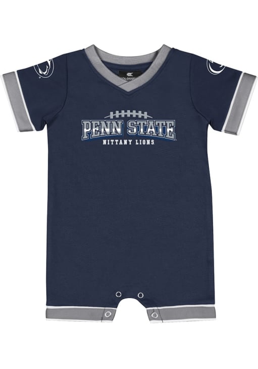 Your little Nittany Lions fan will look adorable in this Baby Navy Blue Penn State Nittany Lions Candy Kingdom One Piece! This Penn State Nittany Lions Romper features a rubberized print.