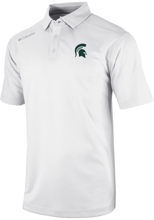 Mens Michigan State Spartans White Columbia Heat Seal Omni Wick Shotgun Short Sleeve Polo Shirt