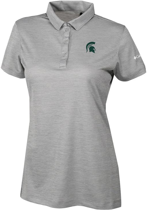 Enhance your professional style with this striking Womens Grey Short Sleeve Polo Shirt! Showcase your team pride among colleagues with this exceptional MSU Grey Heat Seal Set II Short Sleeve Polo. Stand out and make a statement in this Michigan State Spartans Short Sleeve Polo, featuring a heat seal team logo that adds a touch of distinction to your look.