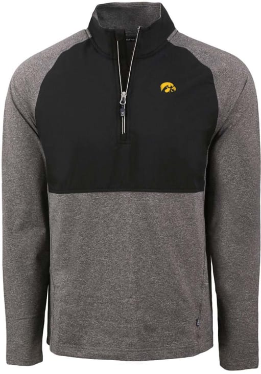 Mens Iowa Hawkeyes Black Cutter and Buck Adapt Eco Hybrid Qtr Zip Pullover