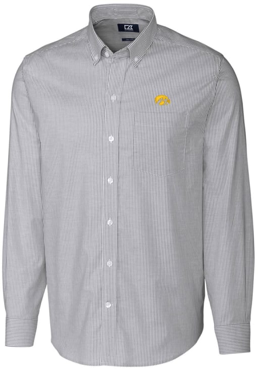 Show your Hawkeyes spirit show in the office with this Iowa Hawkeyes Dress Shirt! Embrace your team spirit and showcase it proudly in this Mens Charcoal Stretch Oxford Stripe Long Sleeve Long Sleeve Button Down Shirt. This Long Sleeve Dress Shirt features a Easy Care Stretch fabric.