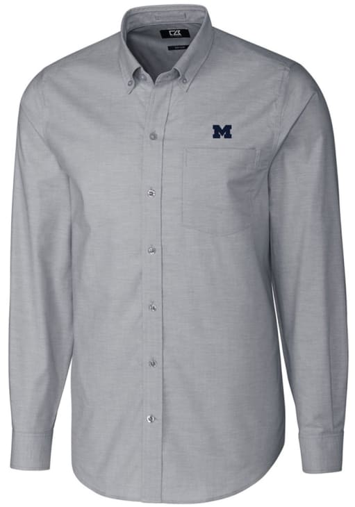 Show your Wolverines spirit show in the office with this Michigan Wolverines Dress Shirt! Embrace your team spirit and showcase it proudly in this Mens Charcoal Stretch Oxford Long Sleeve Long Sleeve Button Down Shirt. This Long Sleeve Dress Shirt features a Easy Care Stretch fabric.
