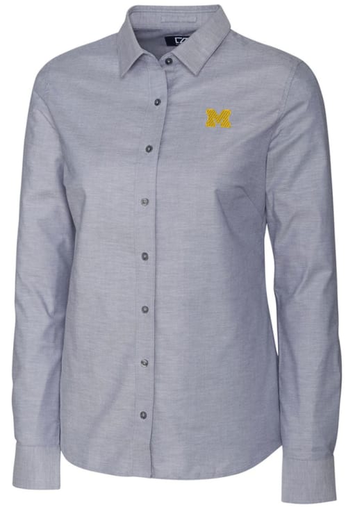 Show your Wolverines spirit show in the office with this Michigan Wolverines Dress Shirt! Embrace your team spirit and showcase it proudly in this Womens Charcoal Stretch Oxford Long Sleeve Long Sleeve Button Down Shirt. This Long Sleeve Dress Shirt features a high quality Easy Care Stretch fabric.