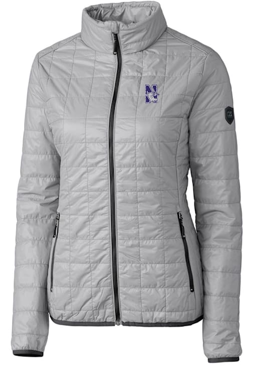 Womens Northwestern Wildcats Grey Cutter and Buck Rainier PrimaLoft Puffer Filled Jacket