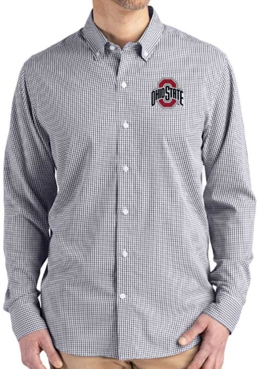 Show your Buckeyes spirit show in the office with this Ohio State Buckeyes Dress Shirt! Embrace your team spirit and showcase it proudly in this Mens Black Gingham LS Woven Long Sleeve Long Sleeve Button Down Shirt. This Long Sleeve Dress Shirt features a team logo.