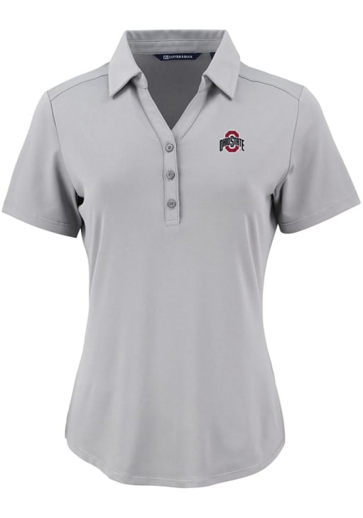 Womens Ohio State Buckeyes Ash Cutter and Buck Forge Eco Polo Short Sleeve Polo Shirt