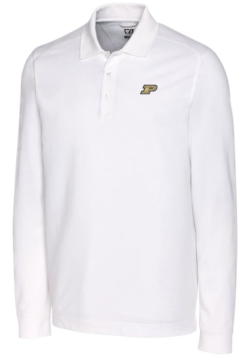 Make a bold statement in this Purdue Boilermakers Cutter and Buck Mens White Advantage Pique Long Sleeve Long Sleeve Polo! This Polo features a high quality tri-blend pique that combines super soft cotton with DryTec polyester and spandex, making this Mens Long Sleeve Polo Shirt perfect for any Purdue fan who wants to display their spirit in any setting.