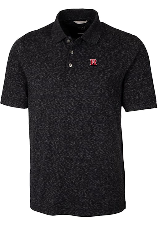 Mens Rutgers Scarlet Knights Black Cutter and Buck Advantage Space Dye Short Sleeve Polo Shirt