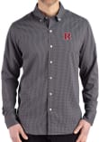 Mens Rutgers Scarlet Knights Black Cutter and Buck Gingham LS Woven Long Sleeve Dress Shirt