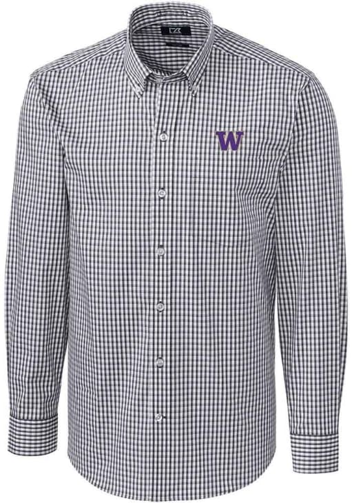Show your Huskies spirit show in the office with this Washington Huskies Dress Shirt! Embrace your team spirit and showcase it proudly in this Mens Charcoal Easy Care Gingham Long Sleeve Long Sleeve Button Down Shirt. This Long Sleeve Dress Shirt features a high quality Easy Care Stretch fabric.