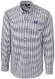 Mens Washington Huskies Charcoal Cutter and Buck Easy Care Gingham Long Sleeve Dress Shirt