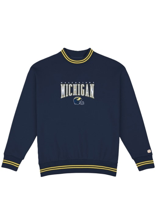 Gear up for the ultimate game day experience with this remarkable Michigan WolverinesMens Blue Fall Football Fashion Sweatshirt! Designed with the true fan in mind, this Wolverines Long Sleeve Sweatshirt features a ribbed trip with contrasting team and alt colors and team helmet embroidered on front chest. Stay warm and comfortable with this Mens Michigan Wolverines Fashion Sweatshirt.