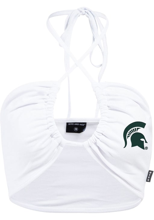 Elevate your tailgating style with this Michigan State Spartans Womens Tank Top. Stay fashionable and comfortable in the refreshing White Slam Dunk Sleeveless Shirt. Discover the enticing details of this MSU Tank Top, showcasing a screen print team logo on left chest that's sure to impress.